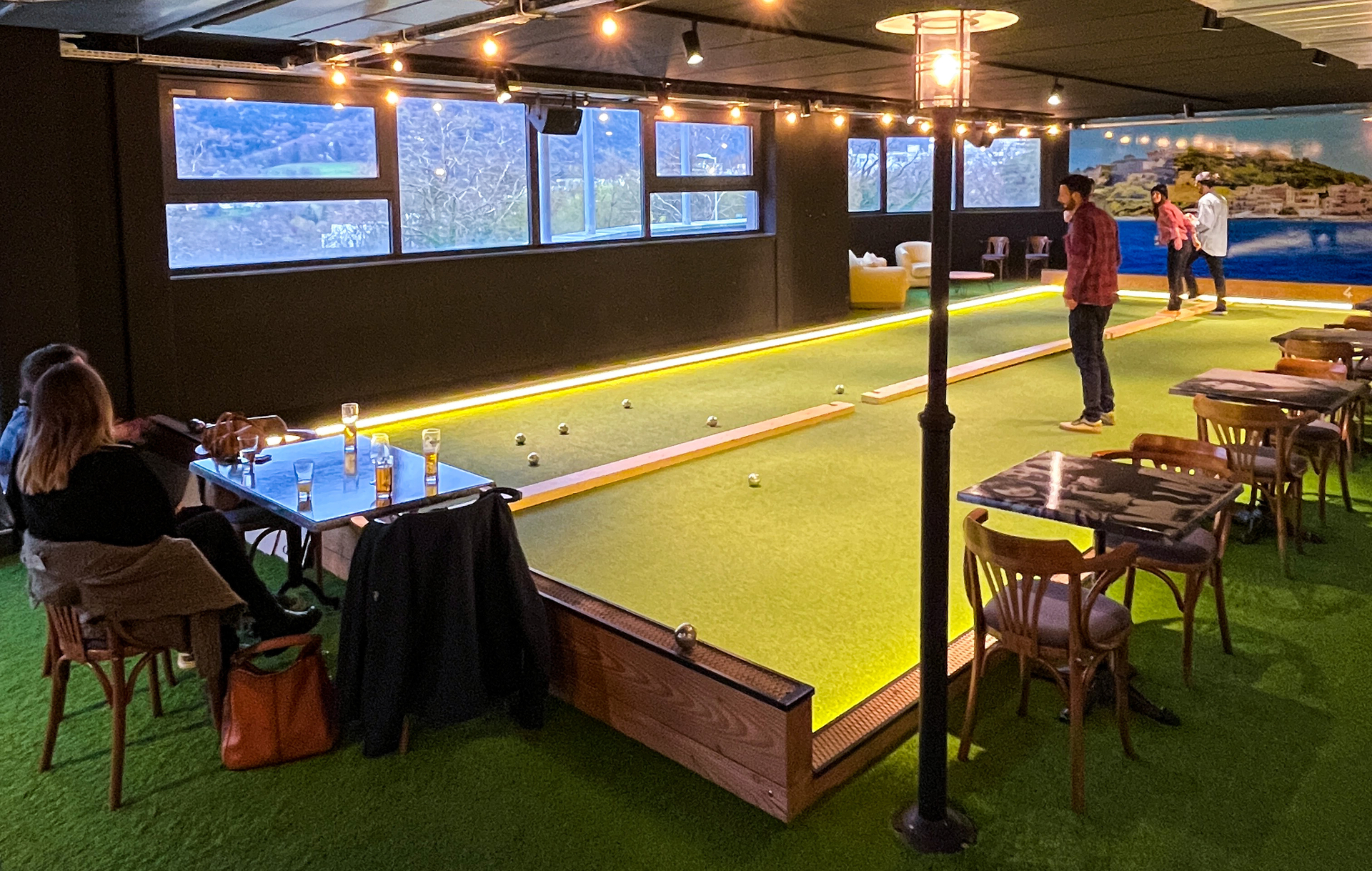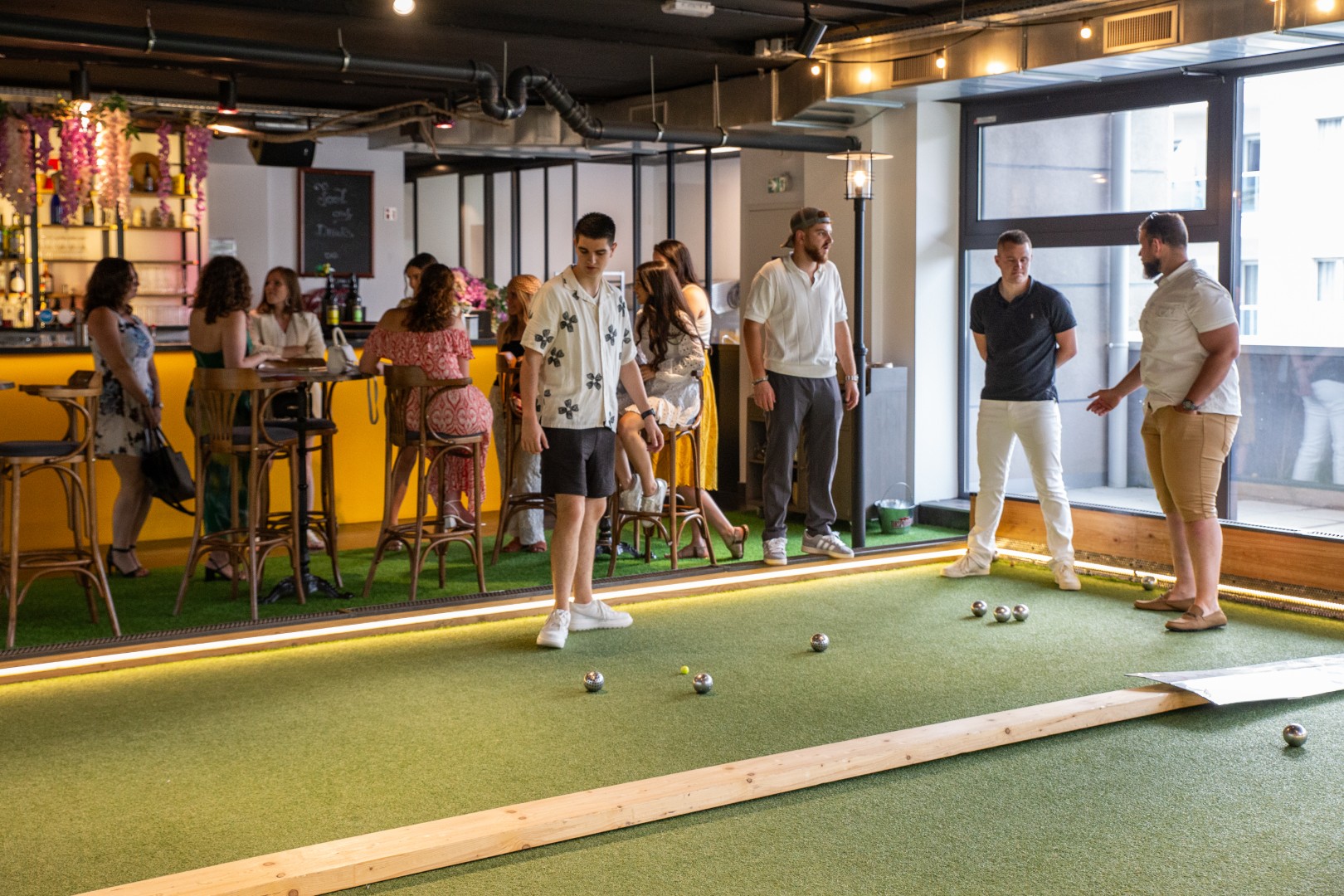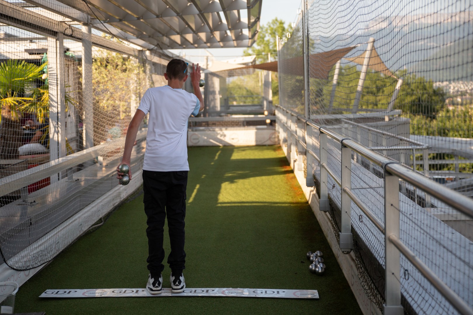 Partagez une partie de pétanque à Annecy, quelle que soit la météo grâce à nos terrains intérieurs ! Nos terrains de pétanque sur gazon synthétique offrent une expérience originale et unique. Profitez de nos terrains en intérieur pour jouer toute l’année, et de notre terrain de pétanque en rooftop avec une vue imprenable sur les montagnes d’Annecy. Accessible à tous, cette activité conviviale vous invite à passer un moment chaleureux entre amis ou en famille, dans un décor enchanteur qui promet dépaysement et plaisir, peu importe la météo.